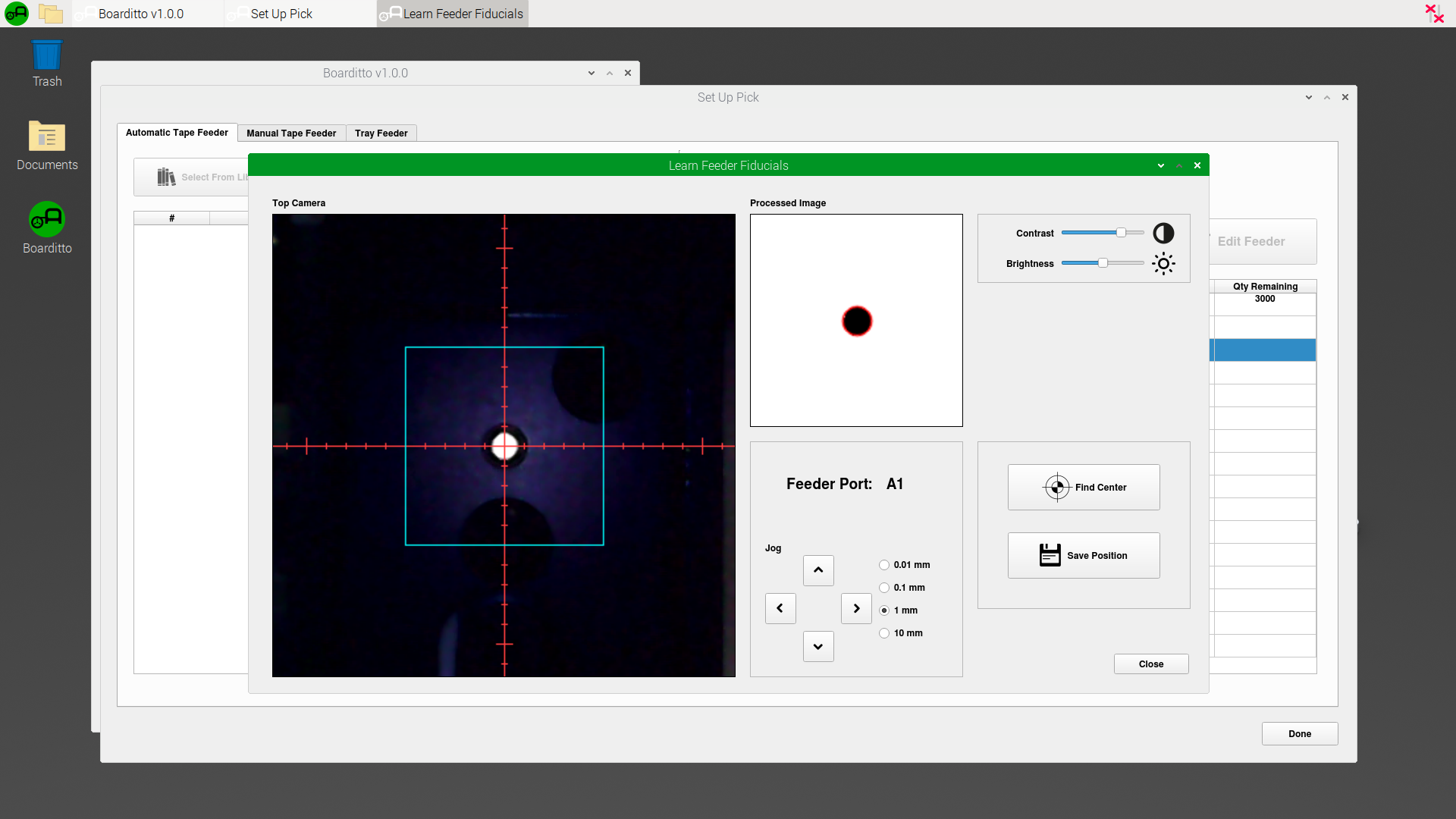 12. Click “Calibrate Automatic Feeders” for the machine to automatically find the center of the automatic feeder’s fiducial.